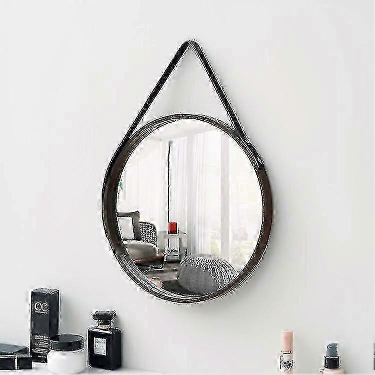 2025 Round Pu Leather Hanging Wall Mirror with Strap - Vanity Makeup Mirror for Bathroom, Living Room & Bedroom Decor