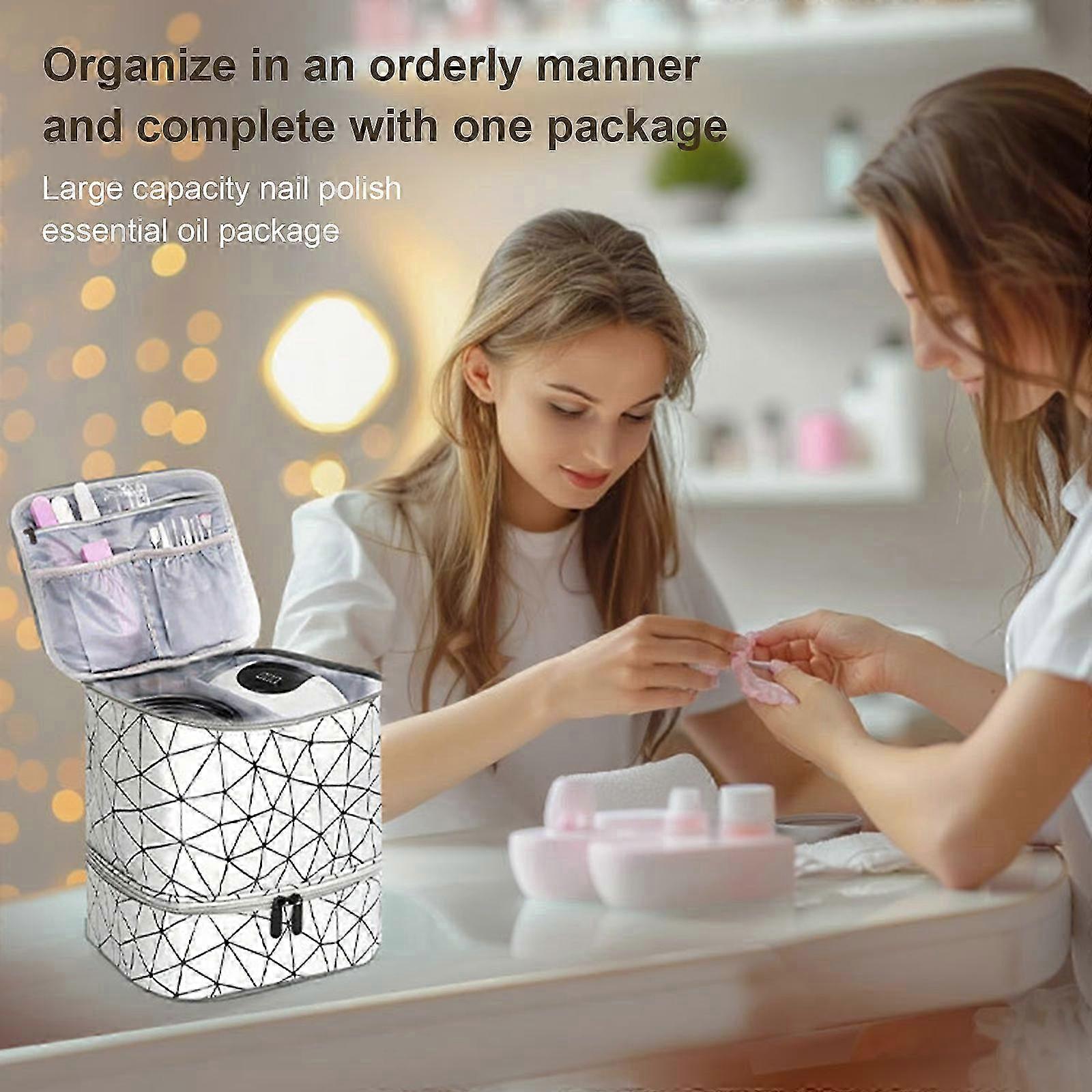 2025 Double-Layer Large Capacity Tool Nail Polish Essential Oil Storage Portable Handle Waterproof PU Fabric Makeup Bag