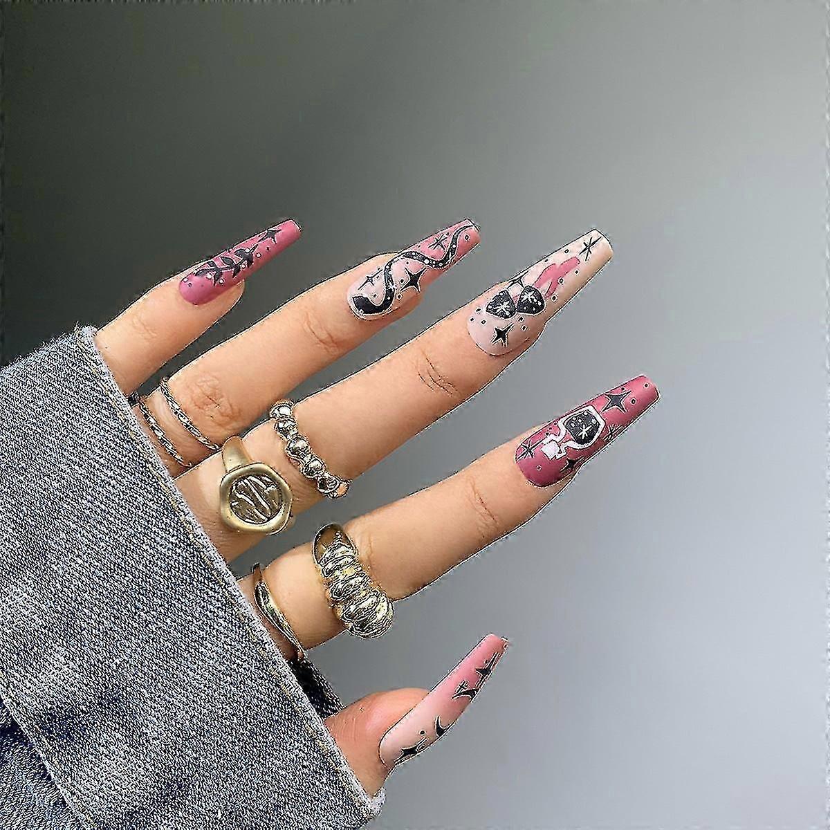 2025 False Nail Tips Fake Artificial Art Diy Finger Cover Long Star Moon Water Bottle Finished Removable