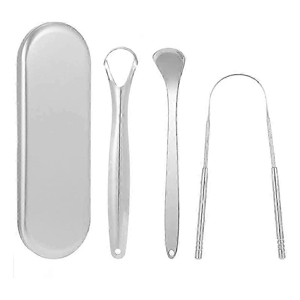 2025 Tongue Scraper For Oral Hygiene, Set Of 3 Stainless Steel Scrapers With Ergonomic Handle, U Shape, Spoon, And Hollow Designs, Convenient Storage