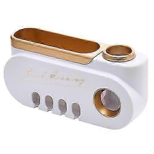 2025 Wall Mounted Toothbrush Holder with Automatic Toothpaste Dispenser, Self Adhesive Toothbrush Caddy for Bathroom