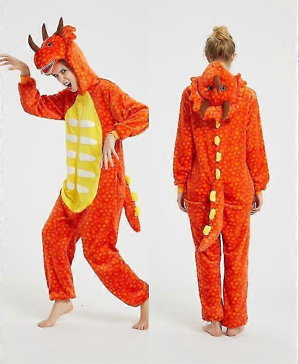 2025 Women Cosplay Hooded Animal Cartoon Animal Orange Triceratops Pajamas