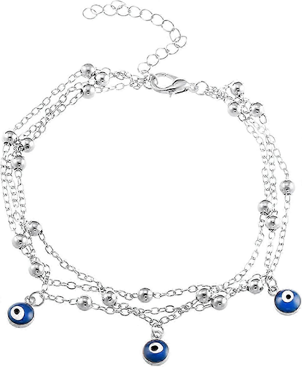 2025 Women Evil Eye Anklet Boho Layered Evil Eye Anklets Gold&Silver Dangle Ankle Bracelets Beaded Foot Chain Beach Jewelry for Women Girls - -