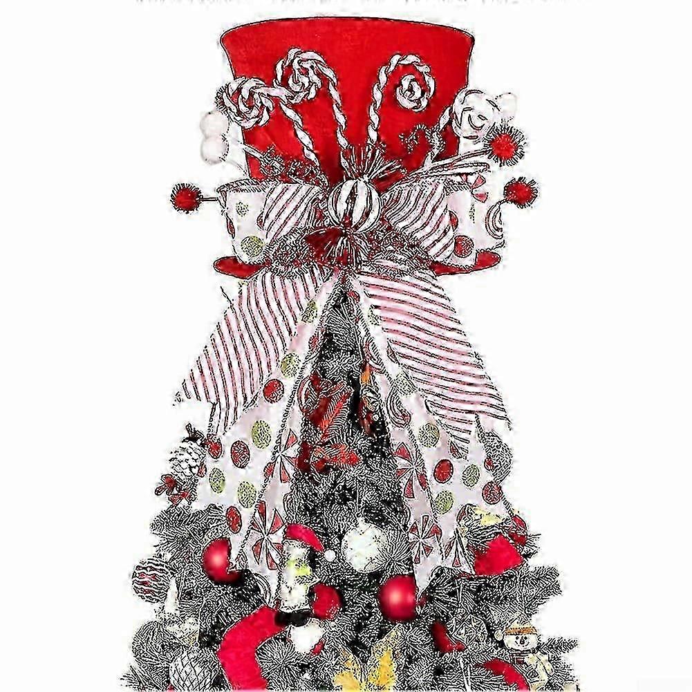 2025 Foldable Christmas Tree Topper Per Hat with Bow, Festive Holiday Decor