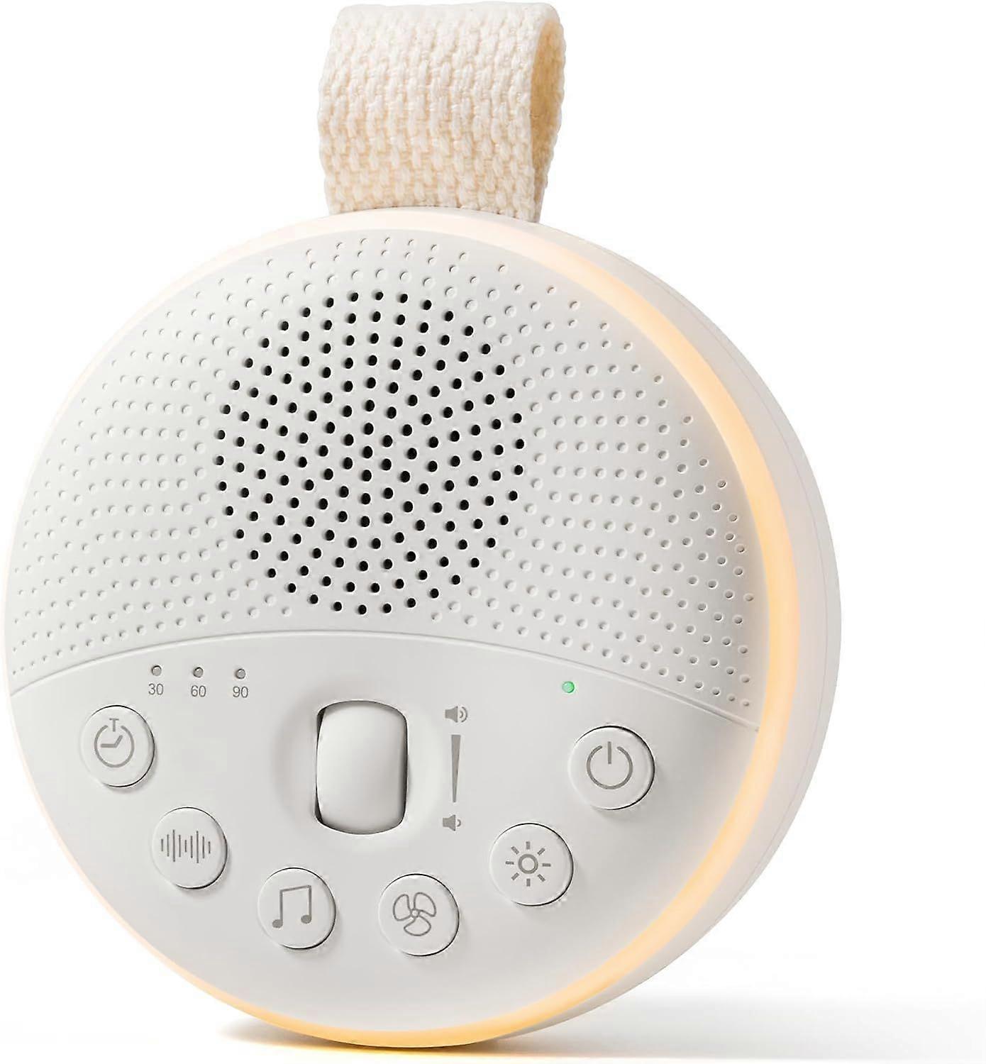 21 Relaxing Sound Options: Offers white noise, nature sounds, and fan sounds to help adults achieve a peaceful night's sleep.Multi-functional Design: Ideal for home use and travel, providing a versatile sleep aid solution for adults.User-Friendly Features: Includes a child lock, adjustable volume, and timer settings for personalized use.Adjustable Night Light: Soft night light with adjustable brightness enhances relaxation and comfort.Extended Battery Life: Enjoy up to 3 weeks of use on a single charge, perfect for continuous sleep support.