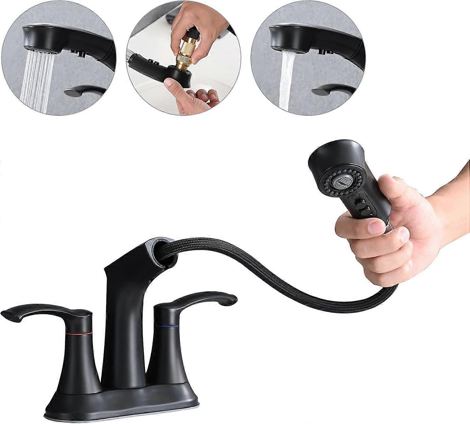 2025 Latest Model Bathroom Faucet with Pull Out Sprayer, 4 Inch Centerset 3 Hole