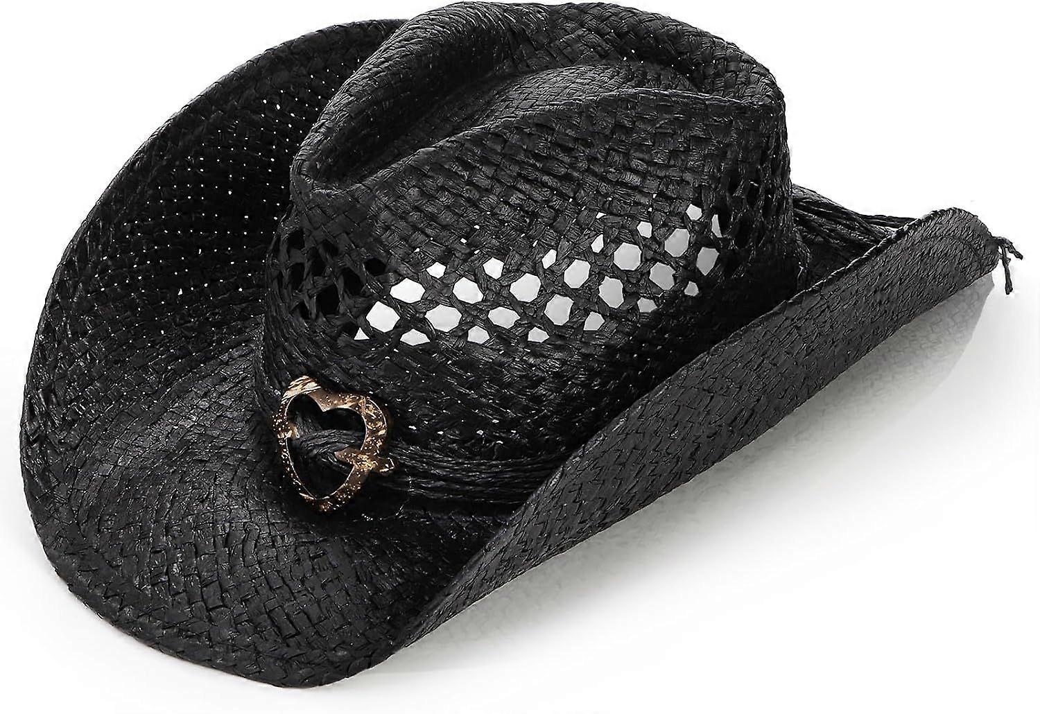 2025 Latest Model Straw Cowboy Hat, Western Style Summer Coastal Cowgirl Hat with Heart Ba