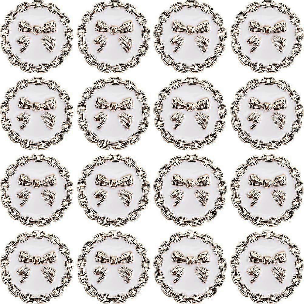 Perfect Gift: : The perfect gift for birthday, Mother's Day, Thanksgiving, Christmas, Valentine's Day, and anniversary. Not only decorate your clothes, but also can be a charm to make jewelry.16Pcs Circular Bow Buttons: : Package includes 16pcs circular bow buttons, each is 0.98x0.33inch(25x8.5mm), hole: 0.08inch(2mm), sufficient quantity can meet your craft needs. Come with a plastic box to storage: 7.4x7.2x1.7cm.Alloy Material: : Made of high-quality alloy material, the button holes are designed with gold pattern, and after multiple polishing, the surface is smooth, sturdy and durable.Unique Design: : The button edge adopts a chain edge design, which has been polished multiple times, exquisite workmanship, unique pattern, widely used in garments, sweaters.Widely Used: : Great clothing accessories, hats, handbags, weddings, festivals, crafts, ribbons, festival embellishments, scrapbook crafts making and other items.