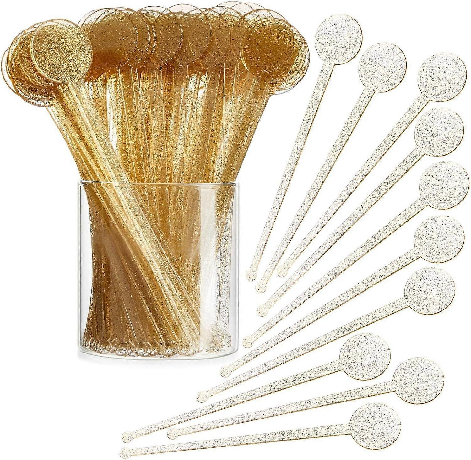 2025 Latest Model 150 Pack Gold Glitter Swizzle Sticks for Cocktails, 7 Inch Plastic Stirrers