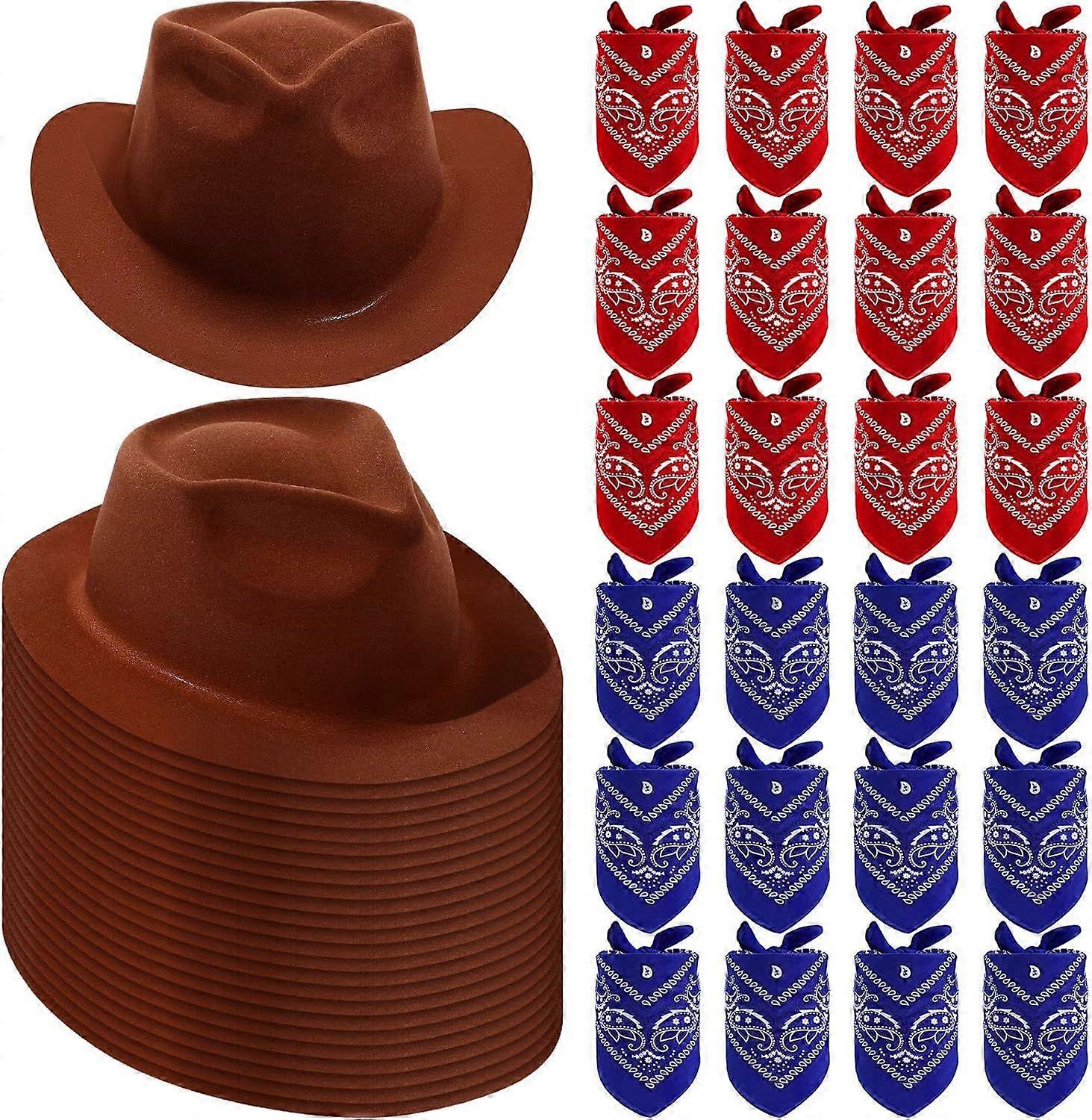 2025 Latest Model 48 Pack Cowboy Hat and Bandana Set, Cowgirl Hats for Boys Girls Felt Cow