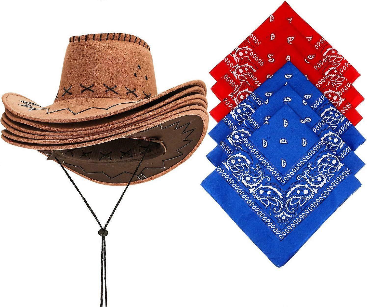 2025 Latest Model 6 Set Western Cowboy Hat with Bandanna Cowboy Party Bandannas