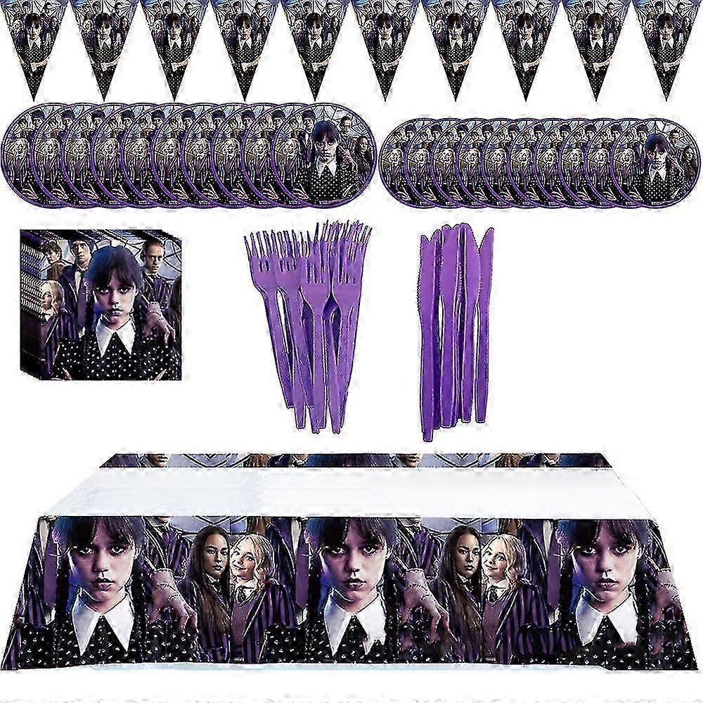 2025 Wednesday Theme Party Decorations Tableware Supplies Include Disposable Paper Plate,knife,fork,napkins,tablecloth Pennant Set