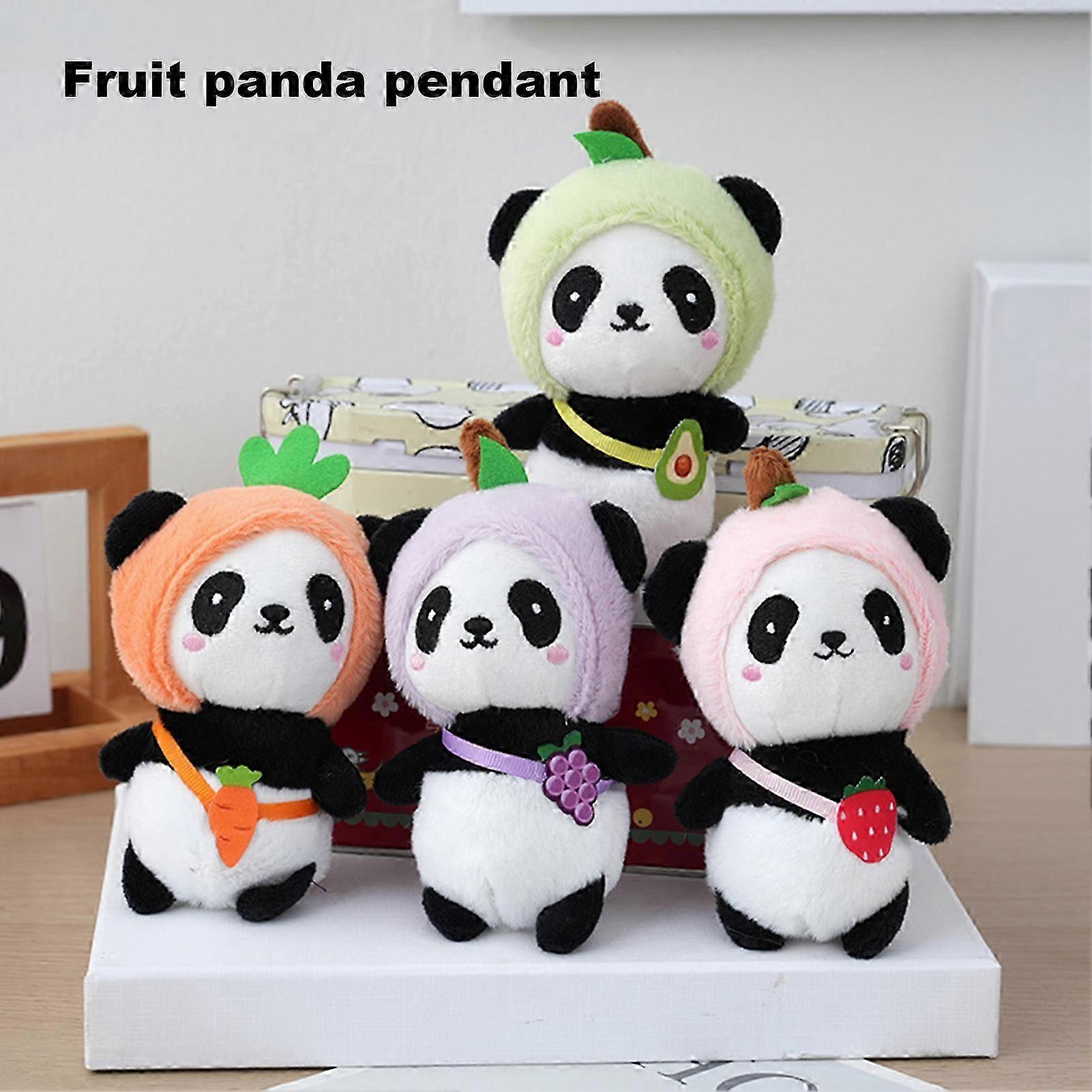 2025 Cartoon Panda Plush Pendant Soft Cotton Stuffed Animal Doll Hanging Ornament Mini Panda Wear Fruit Hat Plushies