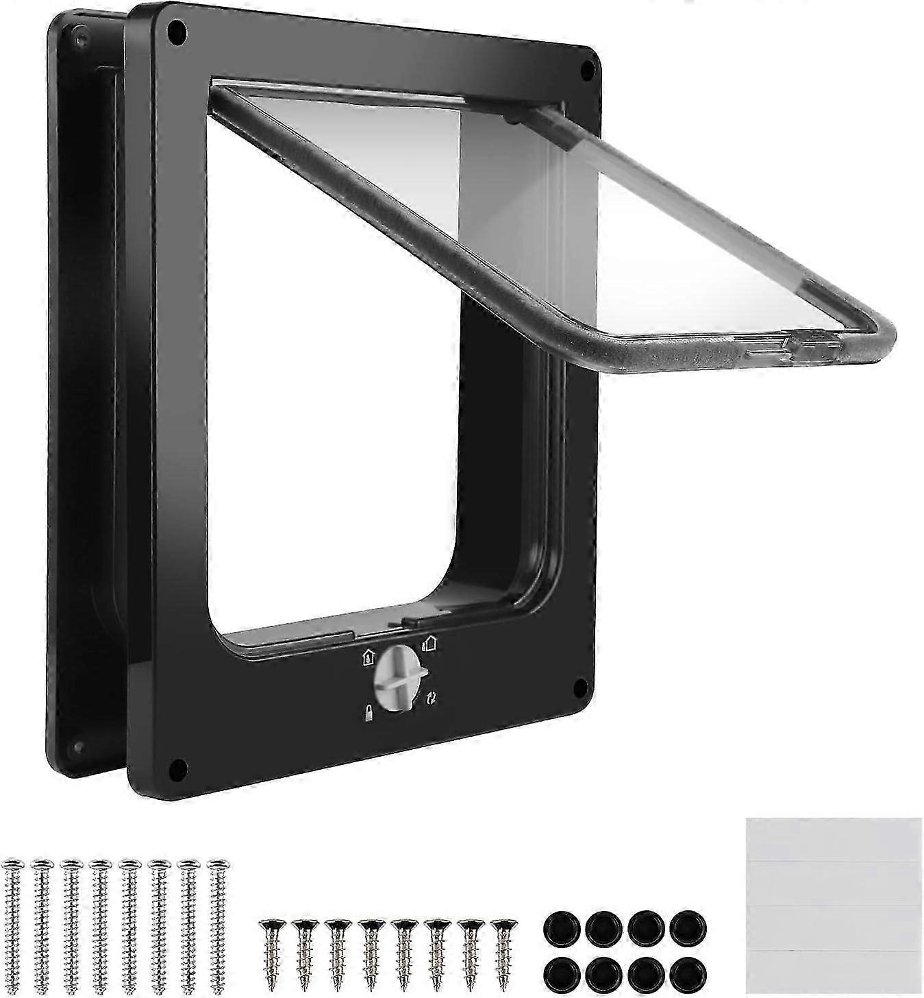 2025 Magnetic White Indoor Cat Door, Cat Door 27 * 23.5 * 5.5cm, 4 Way Cat Door, Black