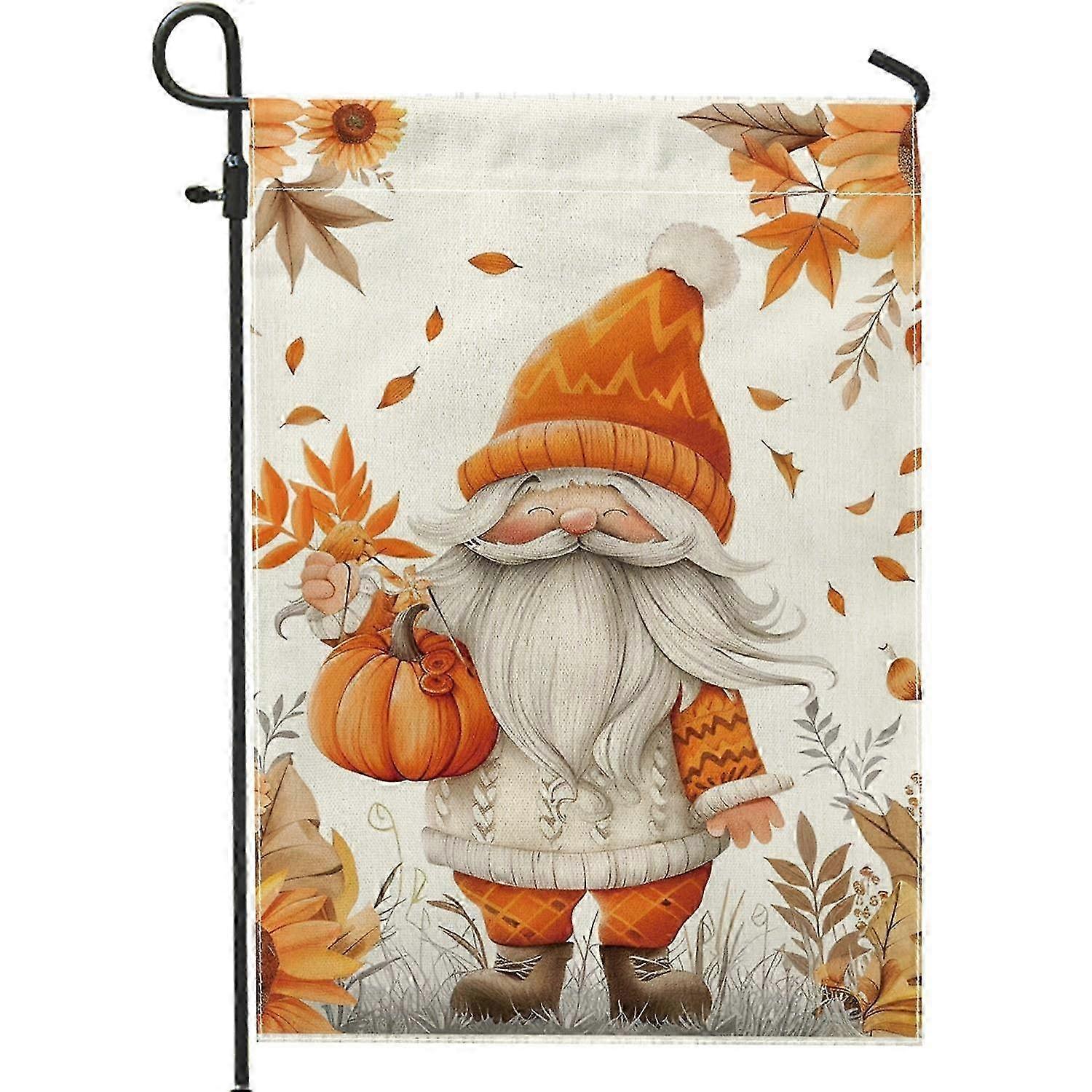 2025 Fall Gnome Garden Flag, Orange Pumpkin Autumn Decor, Vintage Gnome Style for Outdoor Yard Decoration