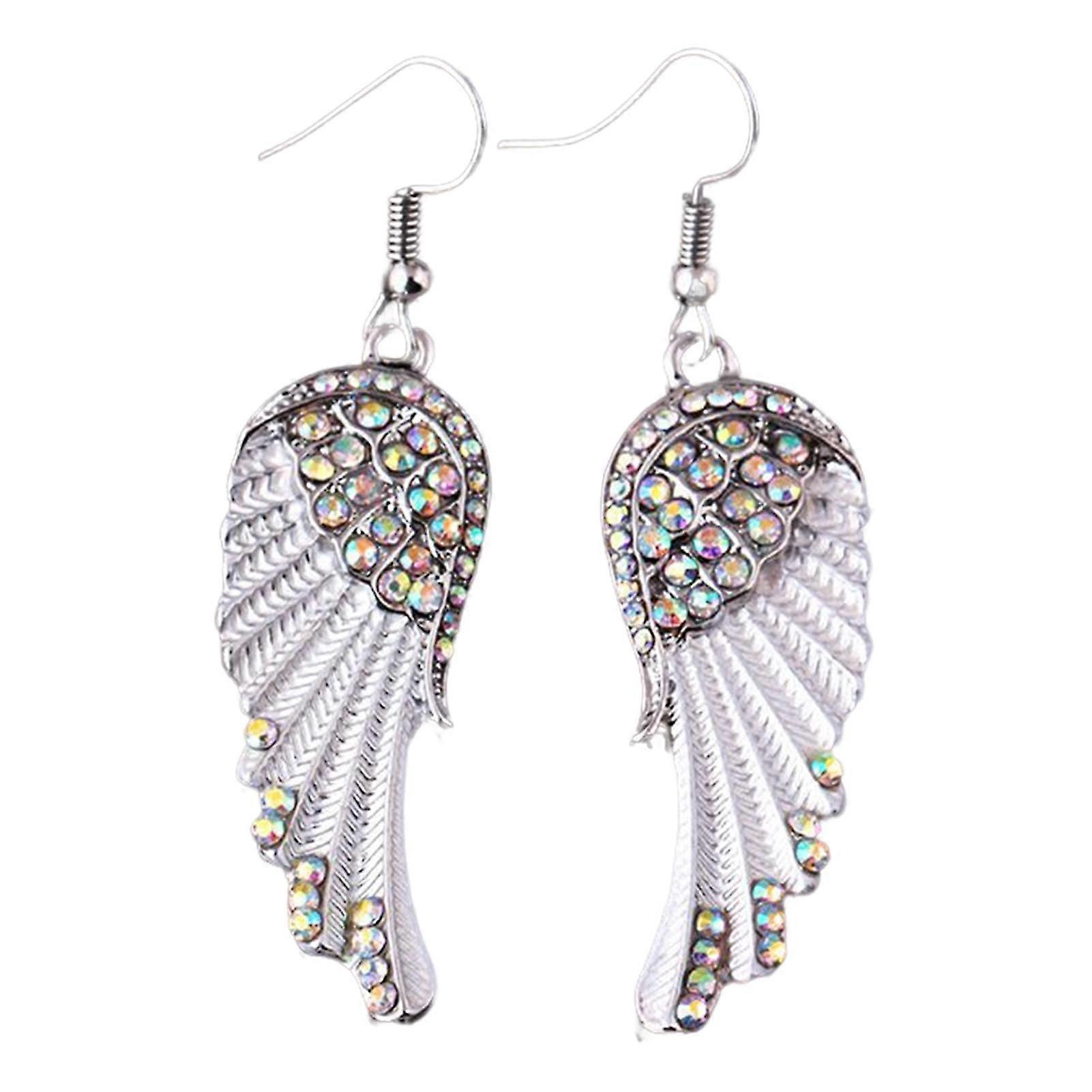 2025 1 Pair Hook Earrings Shiny Rhinestone Inlaid Angel Wing Shape Symmetric Drop Earrings Female Jewelry