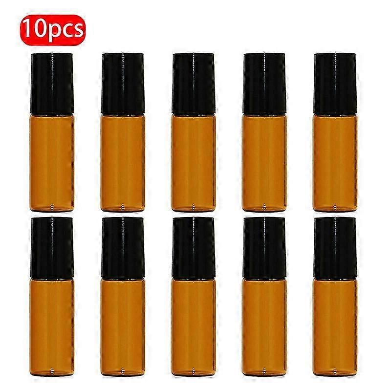 2025 10Pcs 5/10ml Empty Brown Roll On Glass Bottles Roller Ball For Perfume Essential Oil Liquid Substances