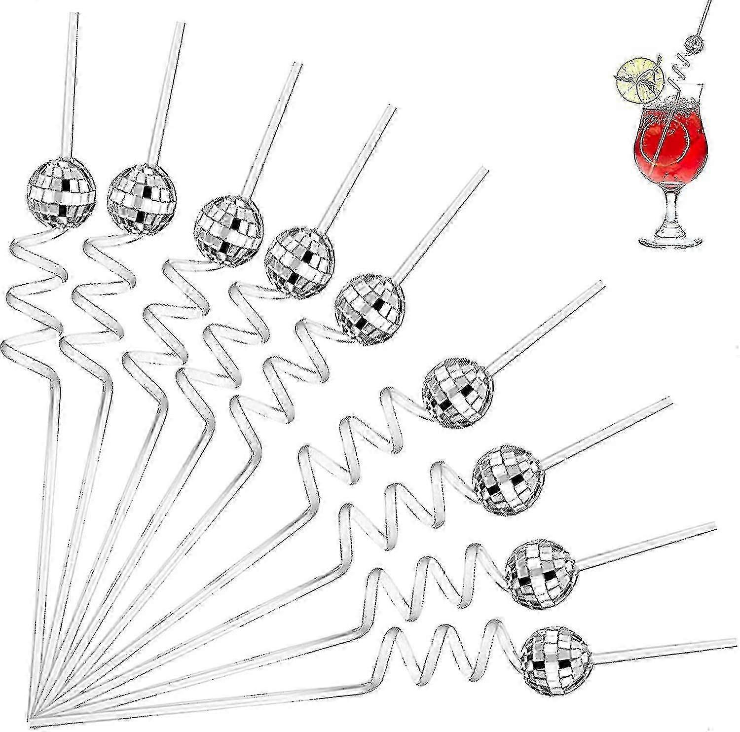 2025 10pcs Mirror Disco Ball Straws, Disco Party Decorations 70s Disco Decorative Straws Disco Ball Stirrers For Dance Party