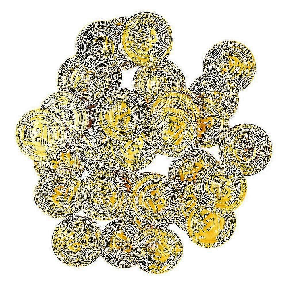 2025 100pcs Pirates Golden Coins Plastic Treasure Coins Play Money Toy Game Props Playset Goodie Bag Fillers Party Favor for Kids G