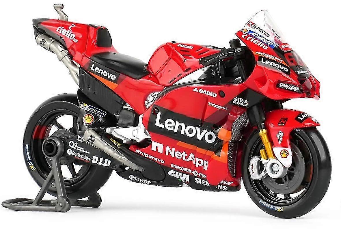 This is a 1/18 scale diecast model motorcycle of the Ducati Desmosedici from Moto GP. It features the 63 F.Bagnaia and 43 J. Miller. First, it's a 1/18 diecast model motorcycle. Second, it's a highly detailed model of the Ducati Corse Desmosedici. Third, it has a diecast metal body combined with plastic parts. Fourth, it comes with an electrostatic paint coating. This model is a great collectible for motorcycle enthusiasts, ing a detailed and accurate representation of the famous Ducati Desmosedici in Moto GP. Note: Due to the light and screen setting difference, the item's color may be slightly different from the pictures. Please allow slight dimension difference due to different manual measurement. Sold by-DIMEANI official store