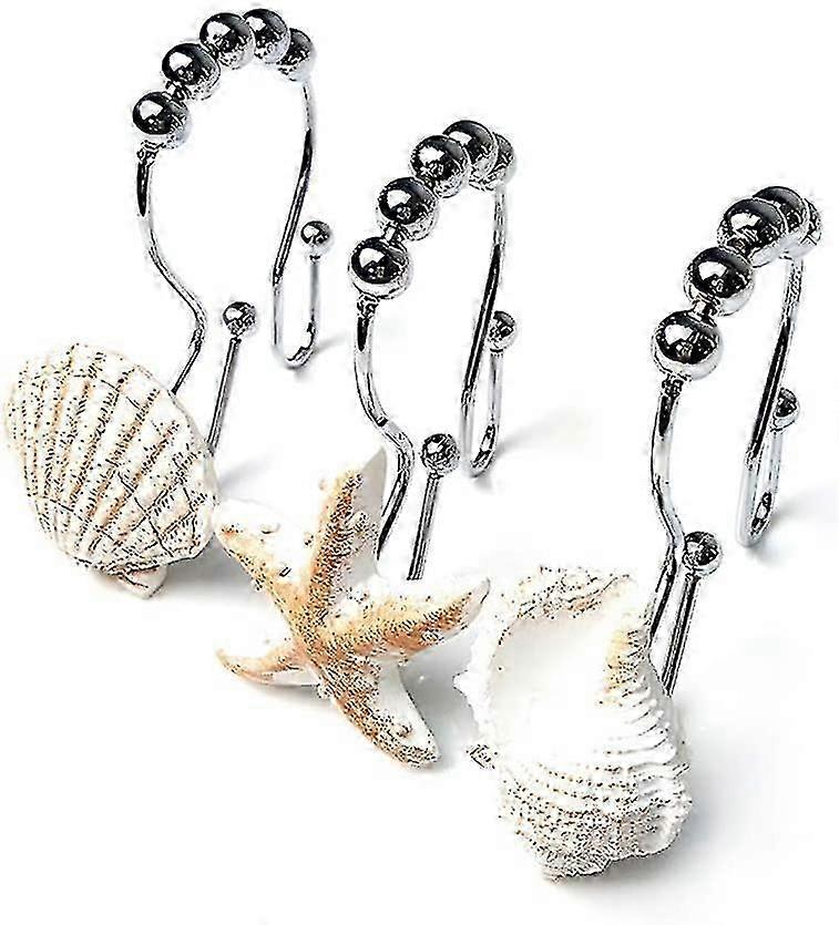 2025 12 Packs Beach Decorative Bathroom Seashell Shower Curtain Hooks