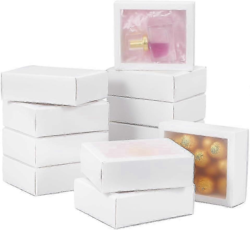 2025 12pcs White Paper Gift Boxes Drawer Boxes with PVC Windows Cover for Party Favor Treats Jewelry Proposal Gift Packaging 5x4.2x1.6 Inch
