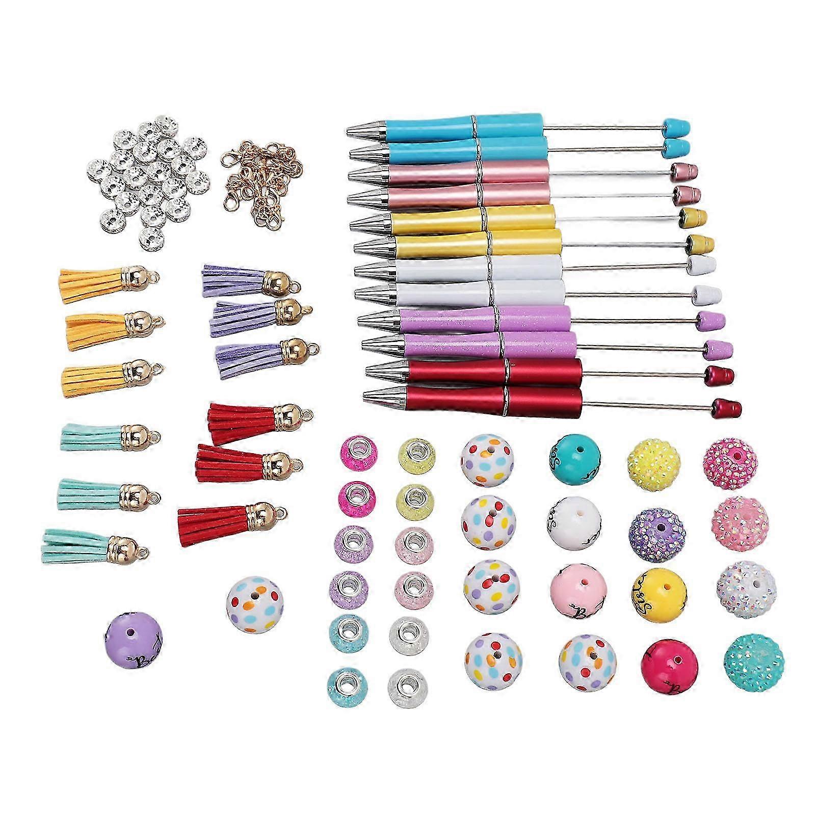 2025 12PCS Beadable Pens Kit Bright Colors DIY Making Beaded Ballpoint Pens with Tassels for Office School Kids Students