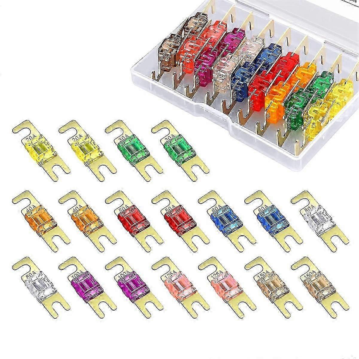 2025 18 Pieces Mini ANL Fuse, Plated ANL Fuse Pack (20A, 30A, 40A, 50A, 60A, 80A, 100A, 125A, 150A) for Automotive Marine