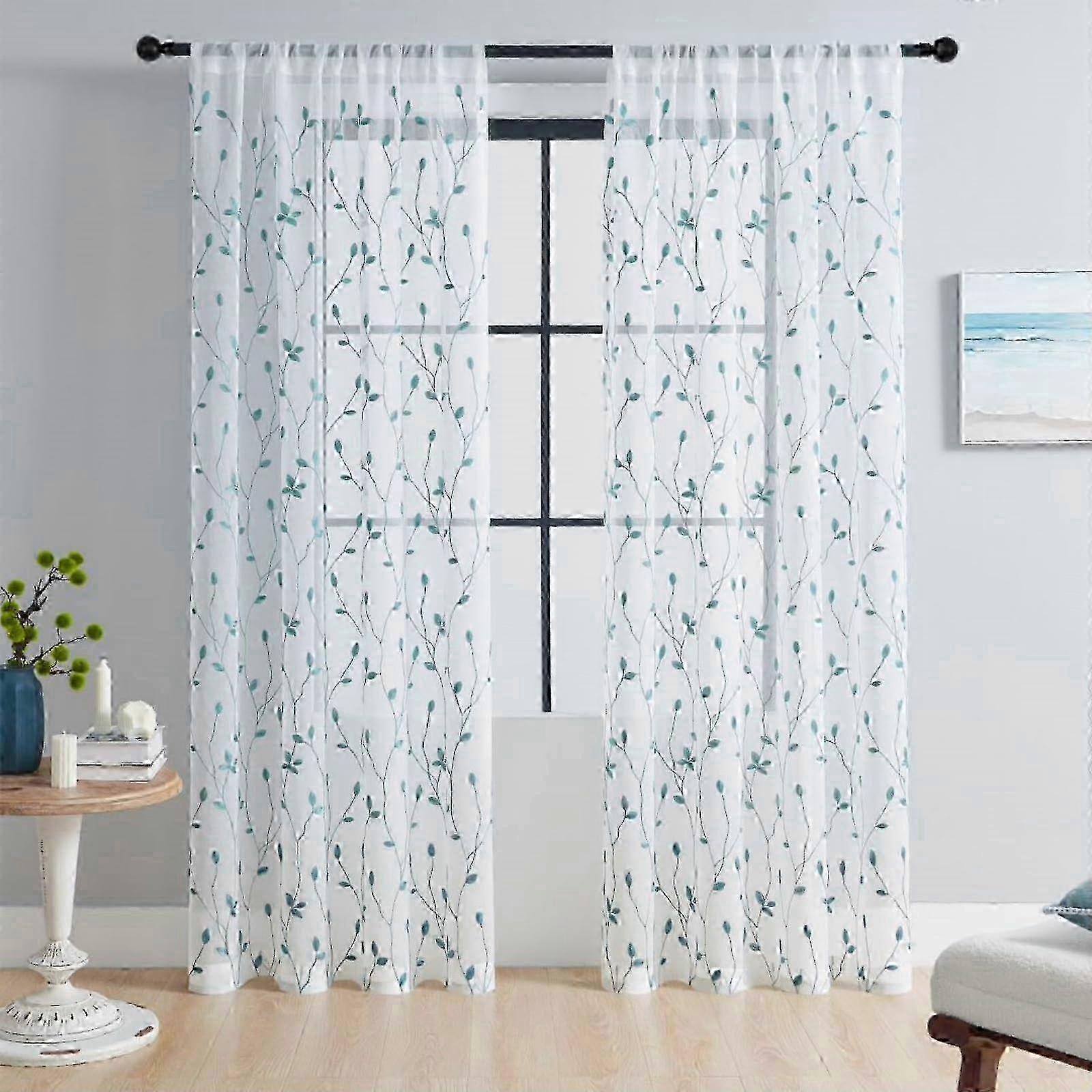 2025 2 Curtain Panels Breath-Taking Embroidered Blue Leaves Design for Home Décor 54 x 84 Inches