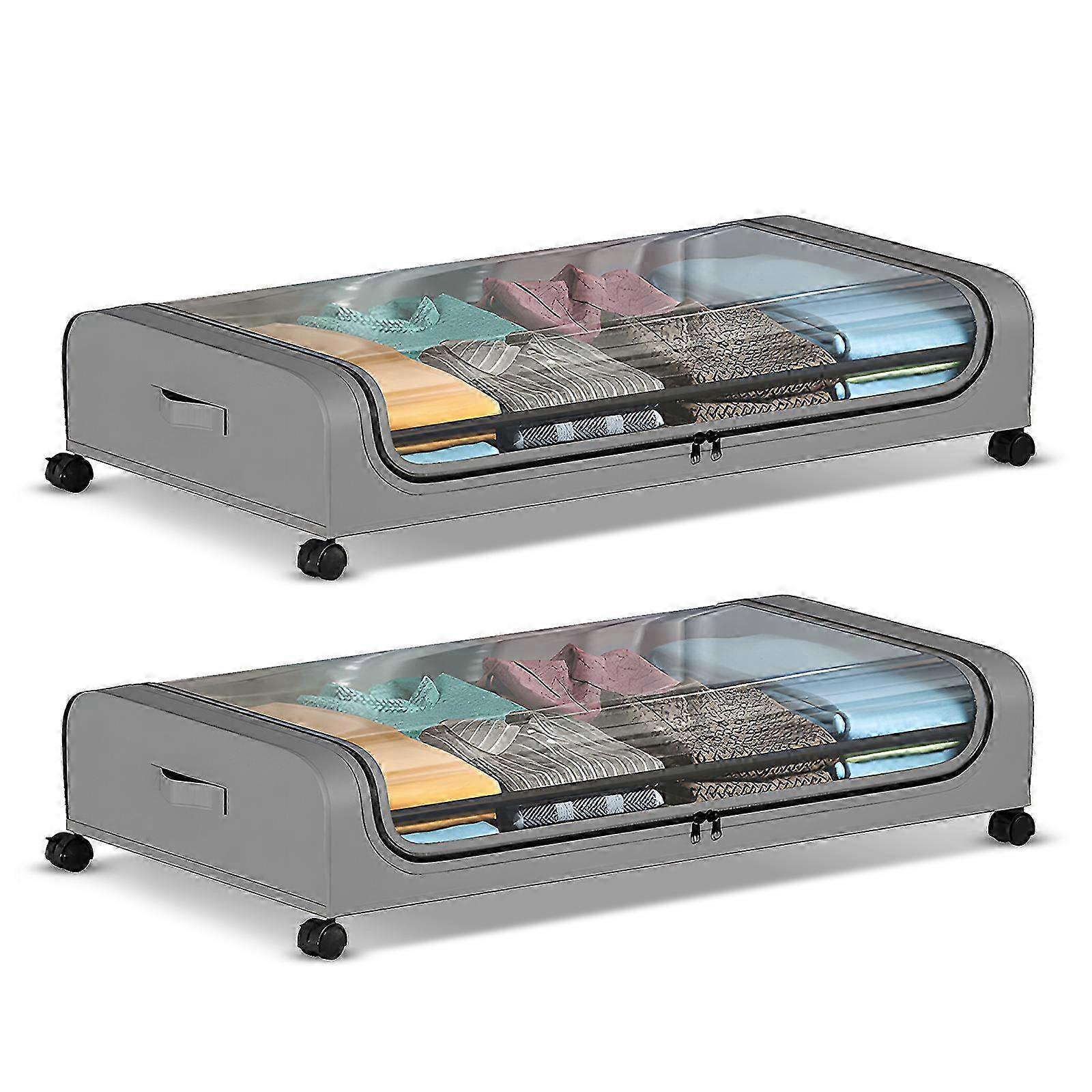 2025 2 Pack Under Bed Storage Container with Lids and Wheels Multifunctional Home Dorm Clothes Storage Bins Clear Visible Dustproof Underbed Organizer
