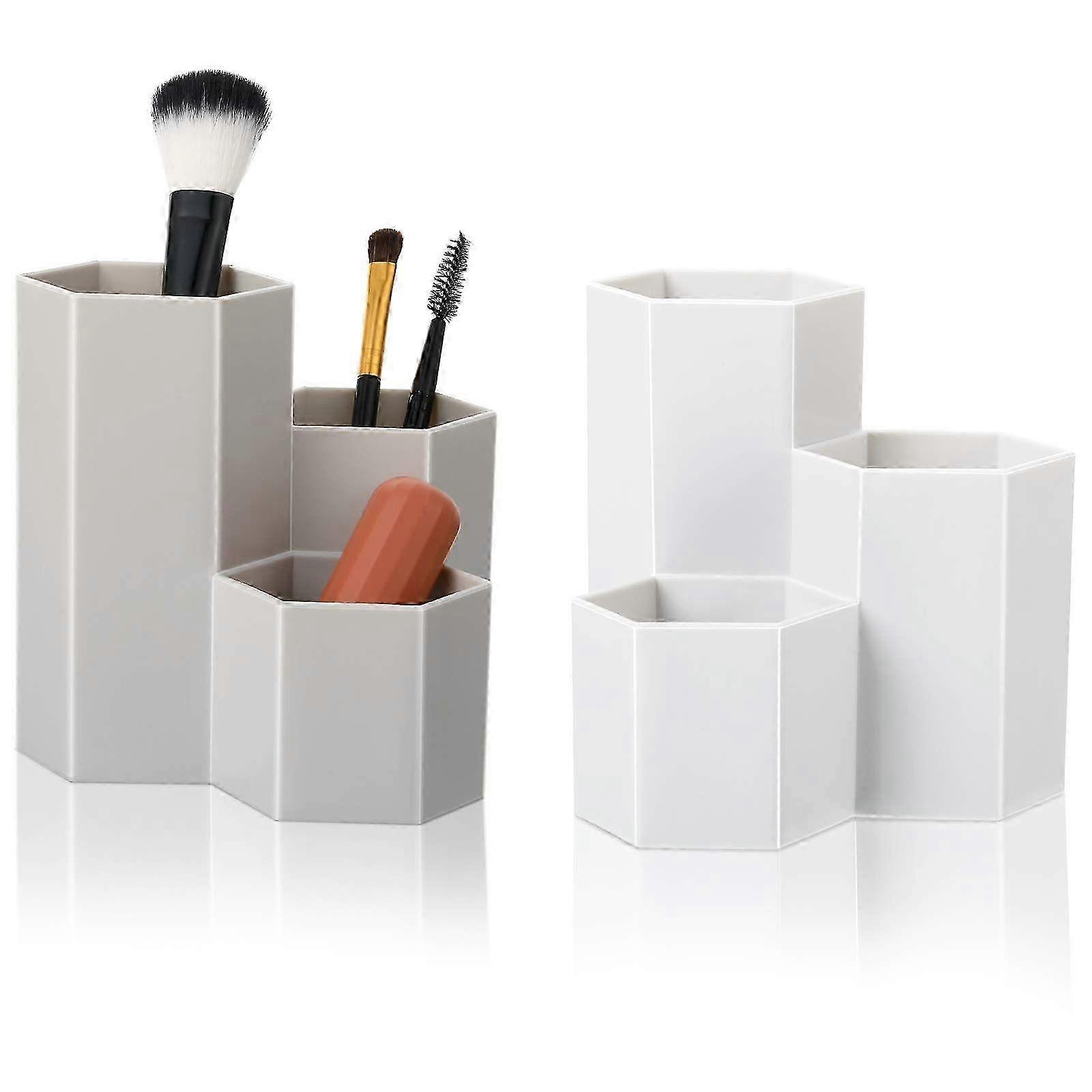 2025 2 Pieces Plastic Makeup Brush Holder Organizer 3 Slot Cosmetics Storage Box Makeup Brushes Cup Multi