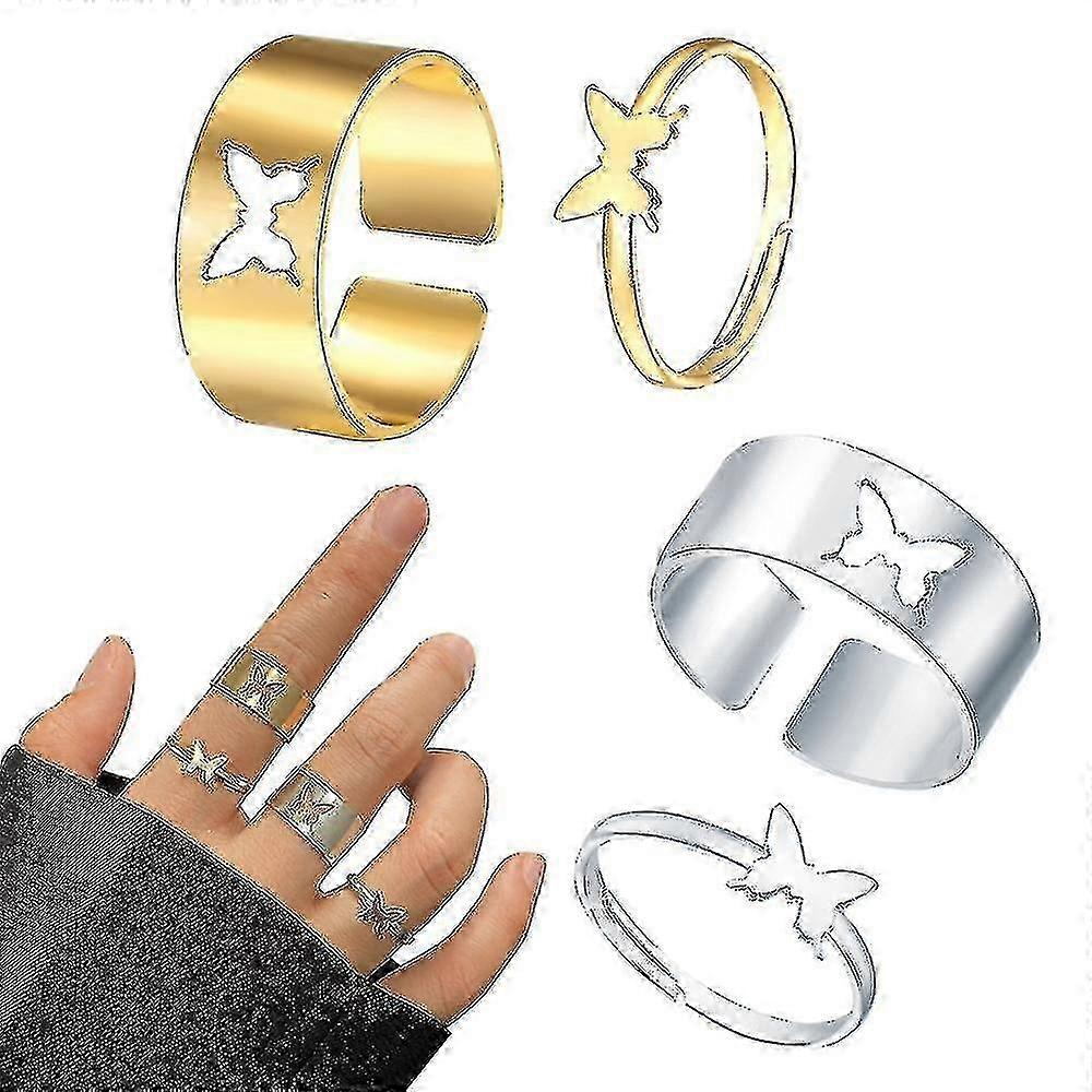 2025 2pcs Rings Couple Matng Hip Cute Trendy Dainty Rings Set