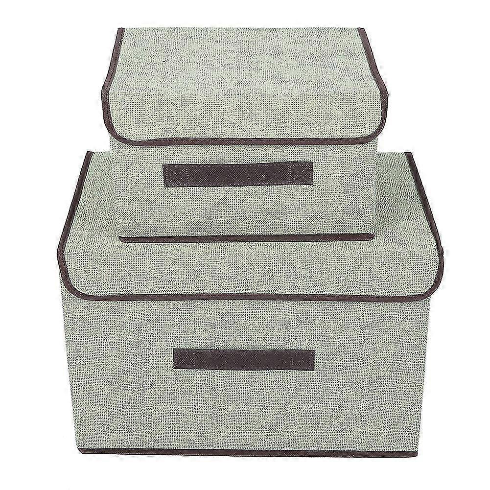 2025 2pcs Folding Square Imitation Linen Clothes Storage Box Set Items Container Organizer