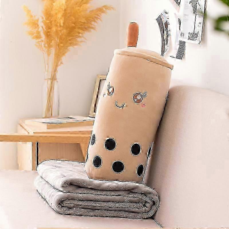 2025 2 In 1 Bubble Tea Stuffed Plush Pillow Long Cylindrical Milk Tea Cup Plush Pillow With Fleece Blanket Bubble Tea Plush Cushion