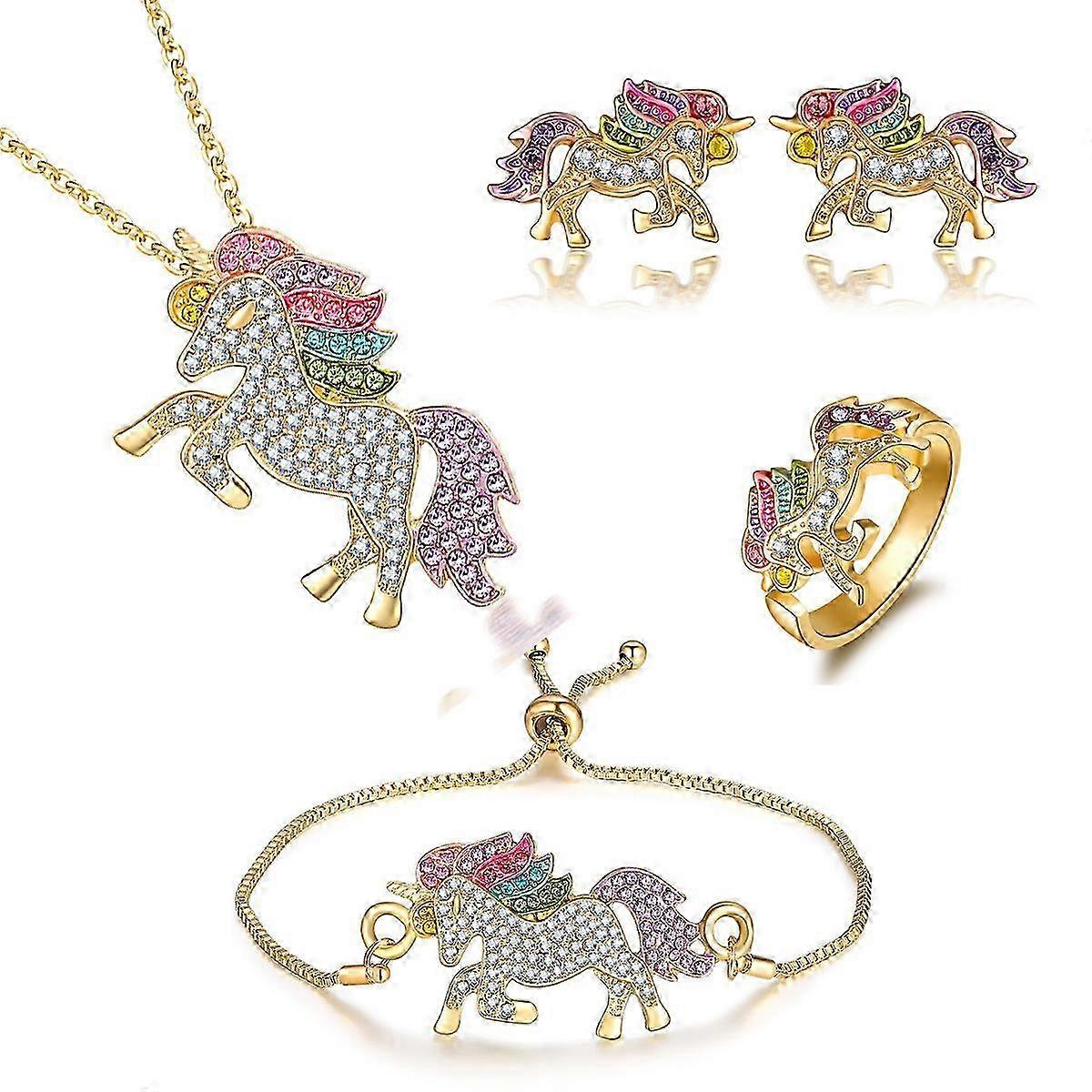 2025 2023 Hot-selling Rainbow Unicorn necklace bracelet earrings ring full of diamond inset children's holiday gift Advent calendar