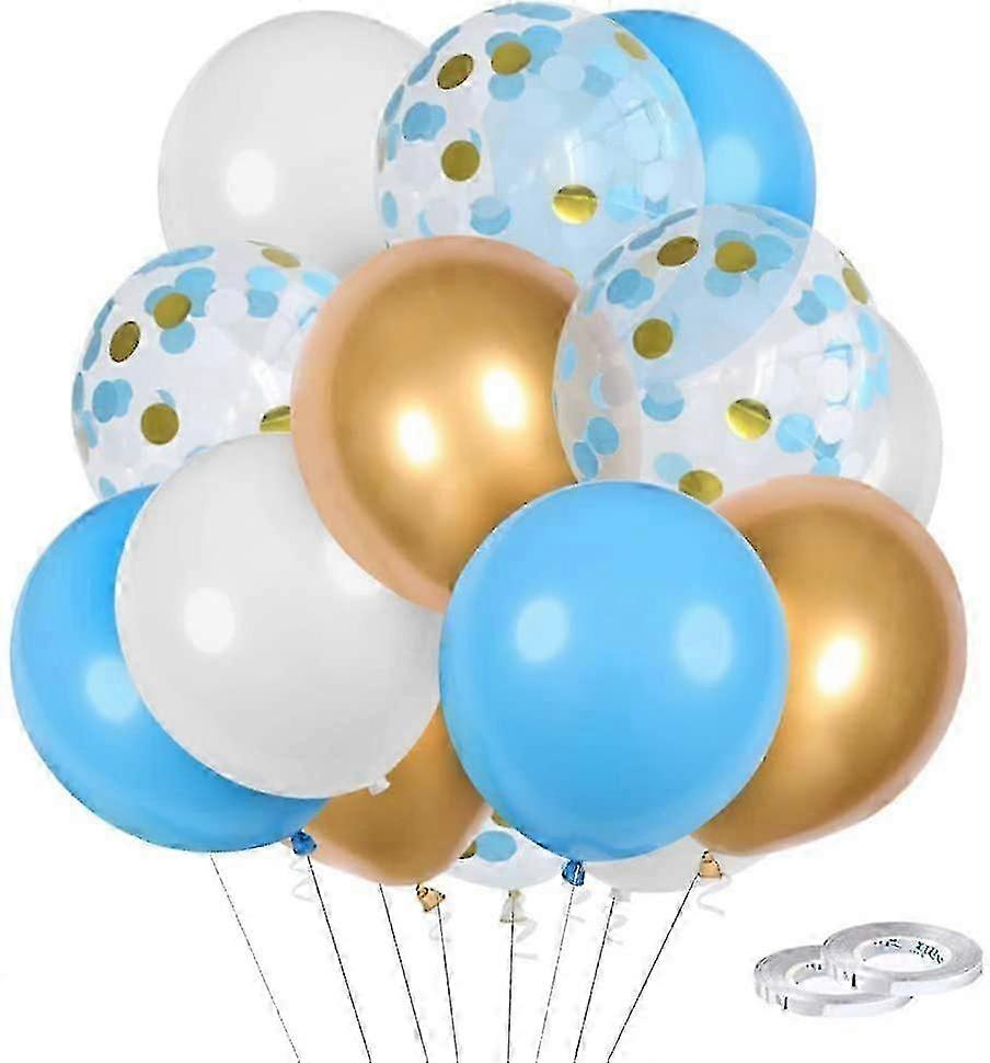 2025 2024 70pcs Blue White Gold Chrome Metallic Balloons Confetti Balloons compatible Wedding Bridal Shower Birthday
