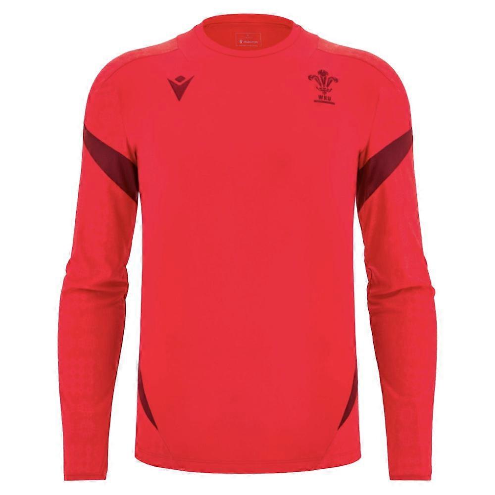 Show your support for Welsh rugby with this official Wales Rugby Union training shirt from the 2025/26 season. Crafted to the same exacting standards as the shirts worn by the professional squad, this striking red long sleeve training top combines authentic Welsh rugby heritage with cutting-edge performance technology.Key FeaturesAuthentic Design & BrandingOfficial Wales Rugby Union licensed productEmbroidered Welsh Rugby crest prominently displayed over the heartMacron branding as official kit supplierClassic Welsh red colourway with professional team detailingPerformance TechnologyLightweight, breathable fabric engineered for optimal comfort during trainingMicromesh ventilation panels for enhanced airflowMoisture-wicking properties to keep you cool and dryDurable construction designed to withstand intensive training sessionsSuperior Comfort & FitLong sleeve design for extended coverage and warmthErgonomic cut tailored for freedom of movementRibbed collar and cuffs for enhanced durabilitySoft-touch fabric finish for all-day comfortTechnical SpecificationsFabric: High-performance polyester blendFit: Athletic training fitSleeves: Long sleeve with ribbed cuffsCollar: Crew neck with reinforced constructionCare: Machine washable at 30CPerfect ForRugby training sessions and warm-upsCasual wear to show your Welsh rugby prideMatch day support and stadium wearSports enthusiasts and collectors of official rugby memorabiliaGift for any passionate Wales rugby supporterAbout Wales Rugby UnionThe Welsh Rugby Union represents one of rugby\'s most storied traditions, with a legacy spanning over 140 years. From the legendary performances at the Principality Stadium to the iconic red shirts that have graced rugby pitches worldwide, Wales continues to be a powerhouse in international rugby.This official training shirt allows you to connect with that rich heritage whilst benefiting from the same professional-grade apparel trusted by the Welsh national team.PersonalisationName & Number - Customise your jersey with the name and number of your favourite Wales player or even your own name. We can print name in the same style worn by the players.