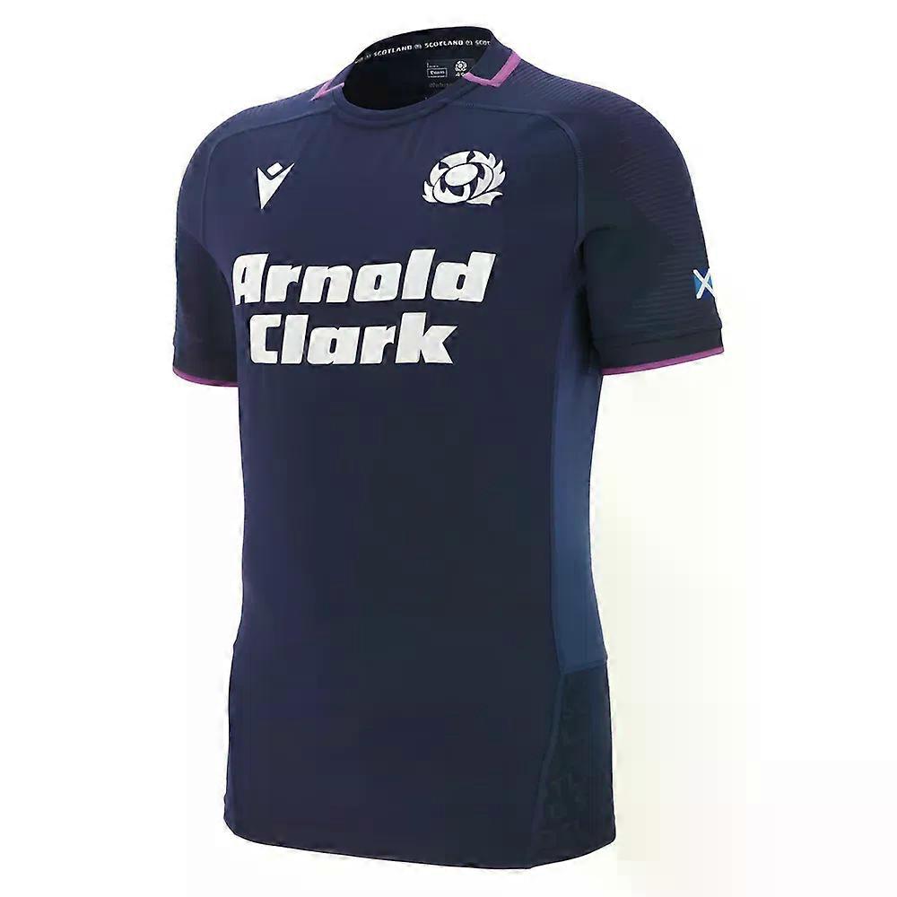 Stand shoulder-to-shoulder with Scottish rugby heroes in this official Scotland Men\'s Home Rugby Shirt. Designed for the passionate supporters who bleed navy and white, this slim-fit masterpiece brings the spirit of Murrayfield directly to your wardrobe, celebrating the fierce pride and unwavering determination that defines Scottish rugby.Built for Scottish WarriorsThis isn\'t just a rugby shirt it\'s armor for the modern Scottish warrior. Whether you\'re roaring from the stands at Murrayfield, supporting your local club, or simply showcasing your Scottish heritage with pride, this shirt embodies the fighting spirit that has made Scottish rugby legendary worldwide.Performance-Focused DesignSlim Athletic Fit: Tailored specifically for the modern rugby supporter, this shirt provides a contemporary silhouette that flatters while allowing complete freedom of movement for passionate celebrations and animated support.100% Polyester Construction: Engineered for durability and comfort, the high-quality polyester fabric withstands the intensity of matchday while maintaining its professional appearance season after season.Strategic Ventilation: Under-arm ventilation panels ensure optimal airflow during those heart-stopping moments when Scotland battles for victory on the pitch.Authentic Scottish HeritageScotland Crest: The iconic Scottish thistle crest sits proudly over the heart, representing centuries of rugby tradition and the unbreakable bond between team and supporter.Official Macron Quality: Crafted by Macron, renowned for their exceptional rugby apparel, ensuring this shirt meets the demanding standards expected by Scottish rugby faithful.Navy Blue Pride: The deep navy colorway represents the traditional colors of Scottish rugby, instantly recognizable from the terraces of Murrayfield to rugby grounds across the globe.Premium Details That MatterEmbossed Lettering: SCOTLAND is elegantly embossed across the shirt, leaving no doubt about your allegiance when the Flower of Scotland echoes around the stadium.Scotland Thistle Embroidery: Meticulously embroidered thistle detail on the left chest showcases the craftsmanship and attention to detail that Scottish rugby demands.Quality Construction: Reinforced seams and professional stitching ensure this shirt stands up to the passion and energy of Scottish rugby support.From Murrayfield to EverywhereThis official home shirt seamlessly transitions from matchday to everyday wear:Stadium Ready: Built to withstand the emotional rollercoaster of international rugbyPub Perfect: The ideal choice for watching Scotland matches with fellow supportersStreet Smart: Sophisticated enough for casual wear while proudly displaying your Scottish rugby allegianceGift Worthy: The perfect present for any Scottish rugby supporterSizing for Scottish SupportersAvailable in sizes from Small to 6XL, ensuring every Scottish rugby fan can wear their pride with the perfect fit. The slim-fit design is true to size simply order your usual size for the ideal balance of comfort and style.More Than Just a ShirtWhen you wear this jersey, you\'re not just supporting a team you\'re representing a nation. You\'re part of the tradition that stretches from the first international rugby match to the modern warriors who wear these colors with honor. Every time Scotland runs onto the pitch, you\'re with them in spirit.Product Code: 400070610001Season: 2025-26Brand: MacronColor: NavyMaterial: 100% PolyesterFit: Slim FitFeatures: Official Scotland crest, under-arm ventilation panelsFlower of Scotland. Forever Scotland.PersonalisationName & Number - Customise your jersey with the name and number of your favourite Scotland player or even your own name. We can print name in the same style worn by the players.