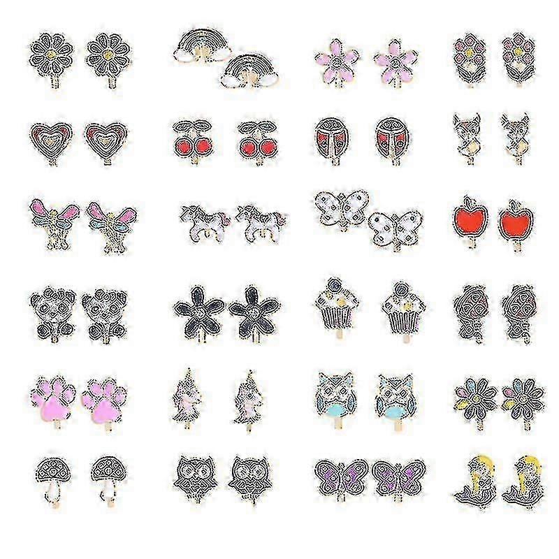 2025 24 Pairs Kids Clip On Earrings For Girls - Cute Animal Clipon Earrings Pack For Little Girls - Colorful Flower Clip-on Earrings Set For Teens Gir