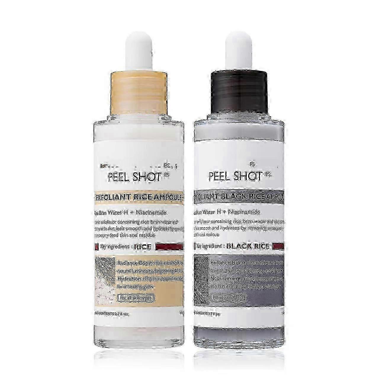 2025 2Pcs Peel Shot Exfoliant Rice Ampoule Duo, White & Black Rice Exfoliating Scrub Set for Face & Body, Removes Dead Skin Cells & Blackheads
