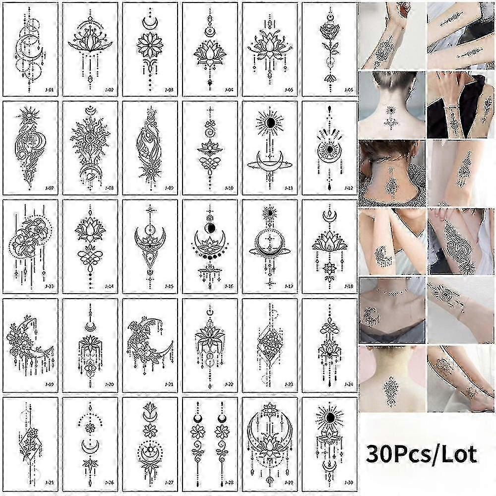 2025 30sheet Temporary Tattoo Sticker Moon Lotus Body Art Arm Tattoos Waterproof Flowers Tattoos Sticker