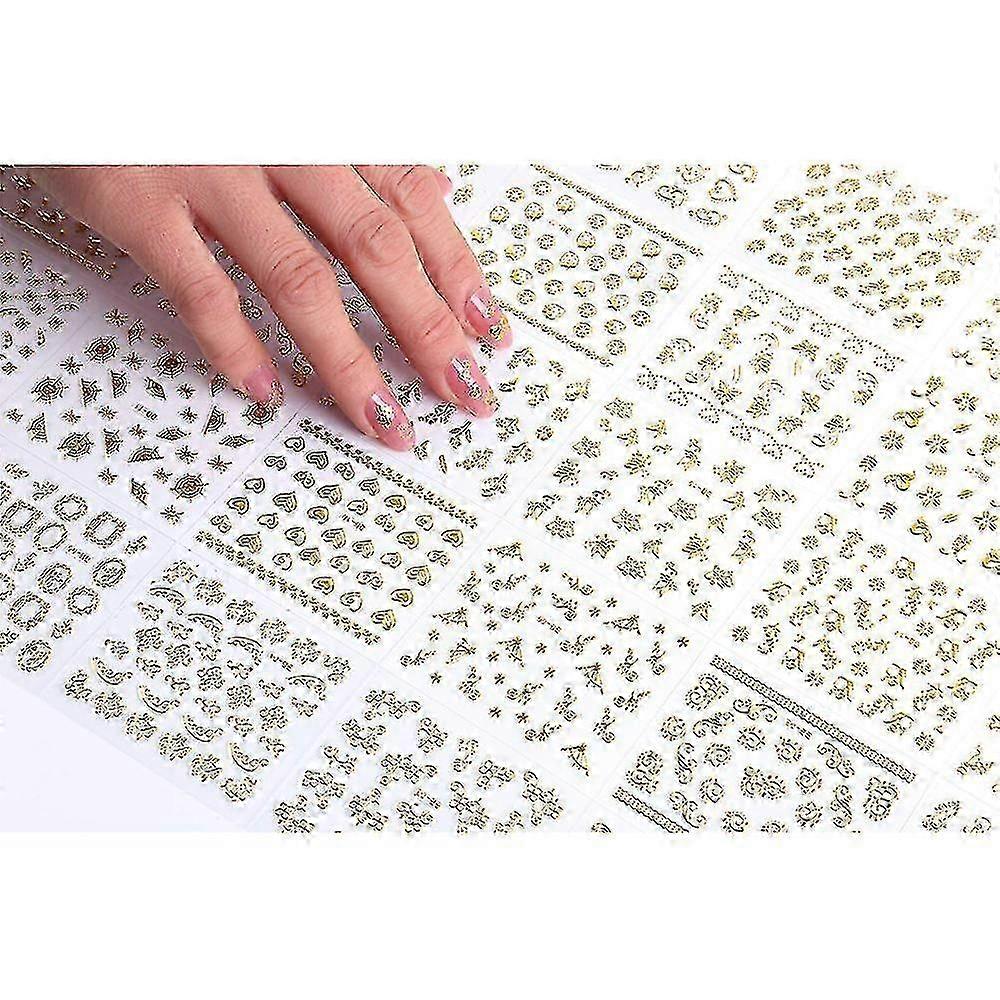 2025 30 Sheets Gold Nail Stickers 3d Nail Art Supplies Metallic Nail Decals