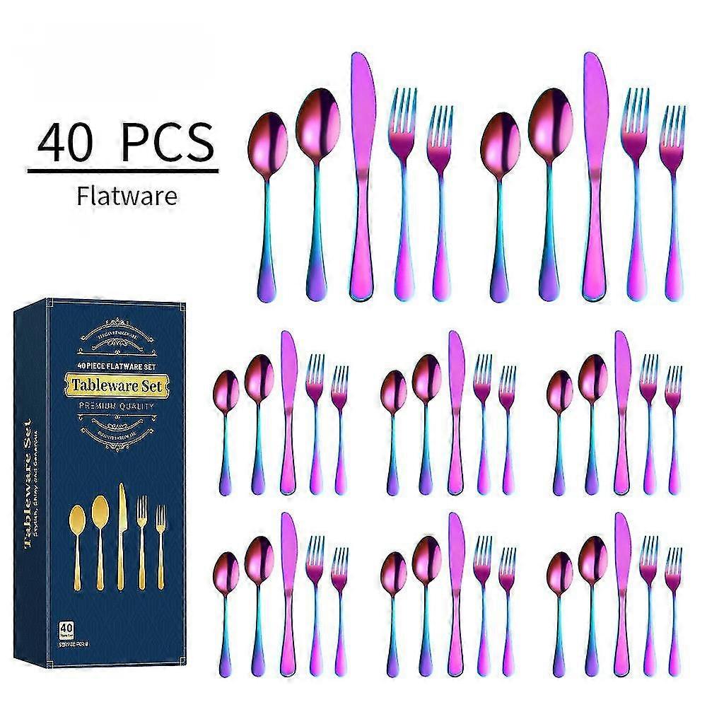 2025 304 Stainless Steel Flatware Sets Five Components 40pcs Western Dessert Steak Knife And Fork Spoon Multi-color Optional