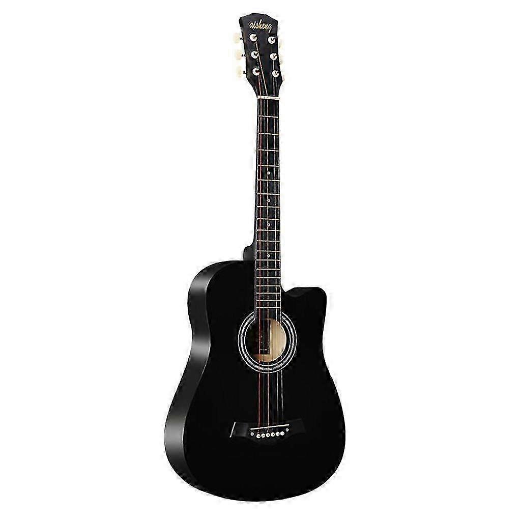2025 38"" Full Size Adult 6 Strings Cutaway Folk Acoustic Guitar for Students Beginners (Black)