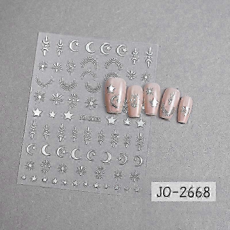 2025 3D Gold Silver Star/Sun/Moon Bronzing Nail Art Sticker Laser Styles Nail