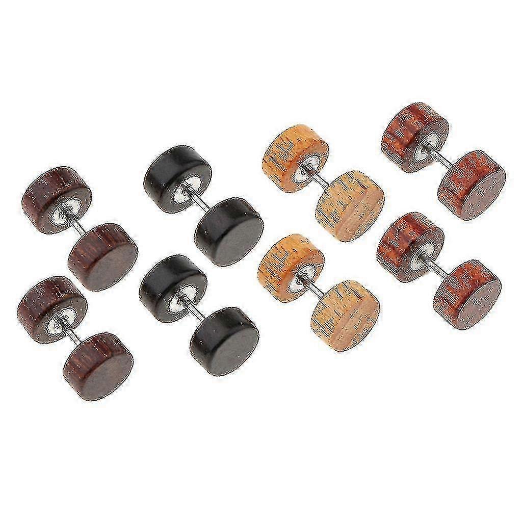 2025 4 Pairs Double Sided Wood Earrings Men Women Body Jewelry Barbell Ear Stud