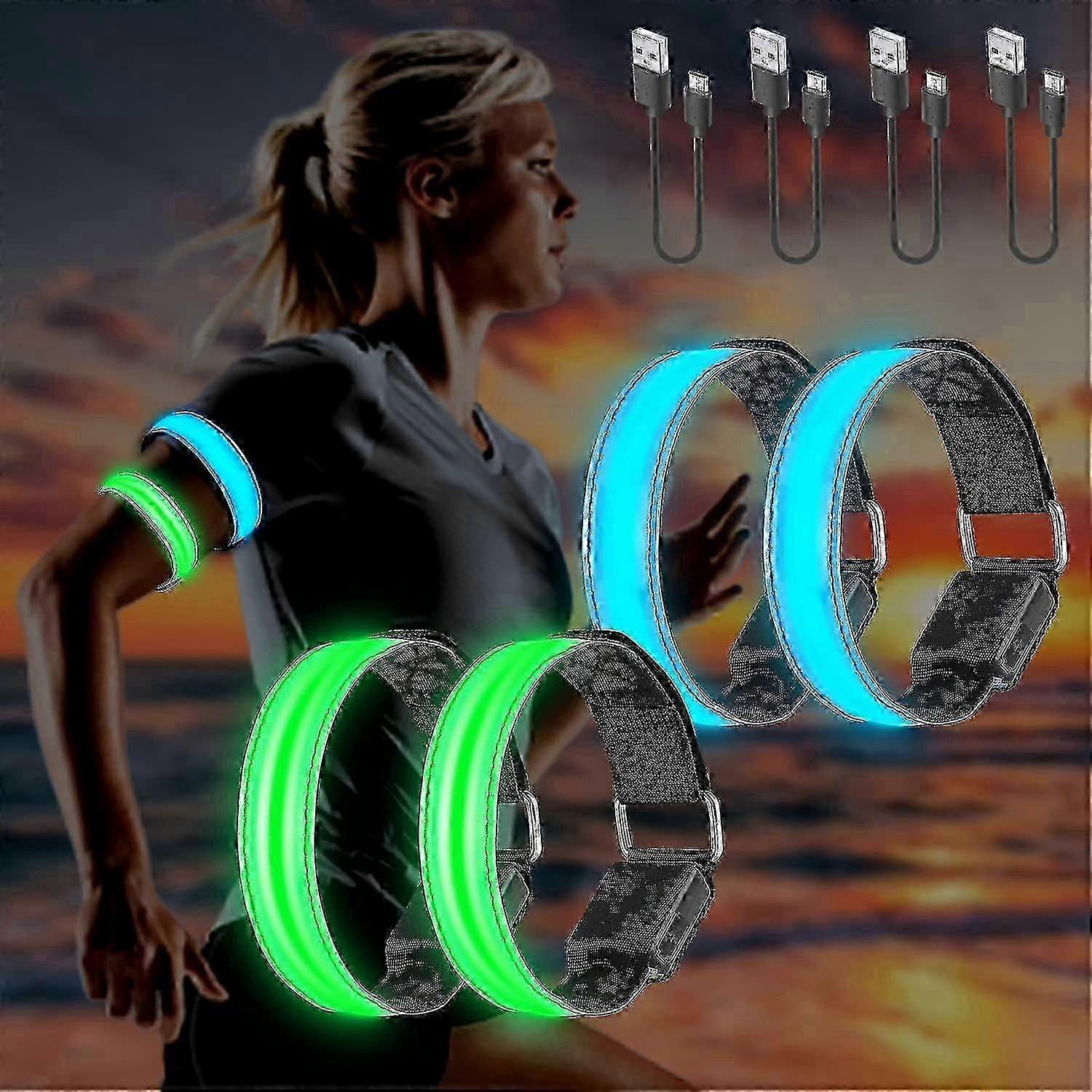 2025 4 Pack Usb Rechargeable Led Light Wristbands, Reflective Led Running Wristband, Adjustable Flashing Band, Safety Led Light Wristband For Arm/wris