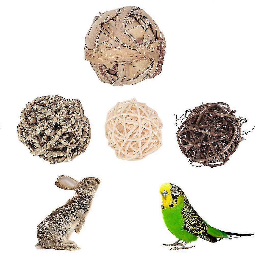 2025 4PCS/ Pack Bird Parrot Chew Toy Rabbit Bunny Teething Treats Small Animal Grass Ball Sepak Takraw Toys