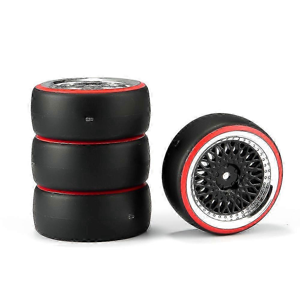 2025 4pcs Rc 1:10 12mm Rubber Drift Tires Black+silver Wheel Set Model Clsck + Pp0366r Fit Dual Wheel Rims Racing On Road Car
