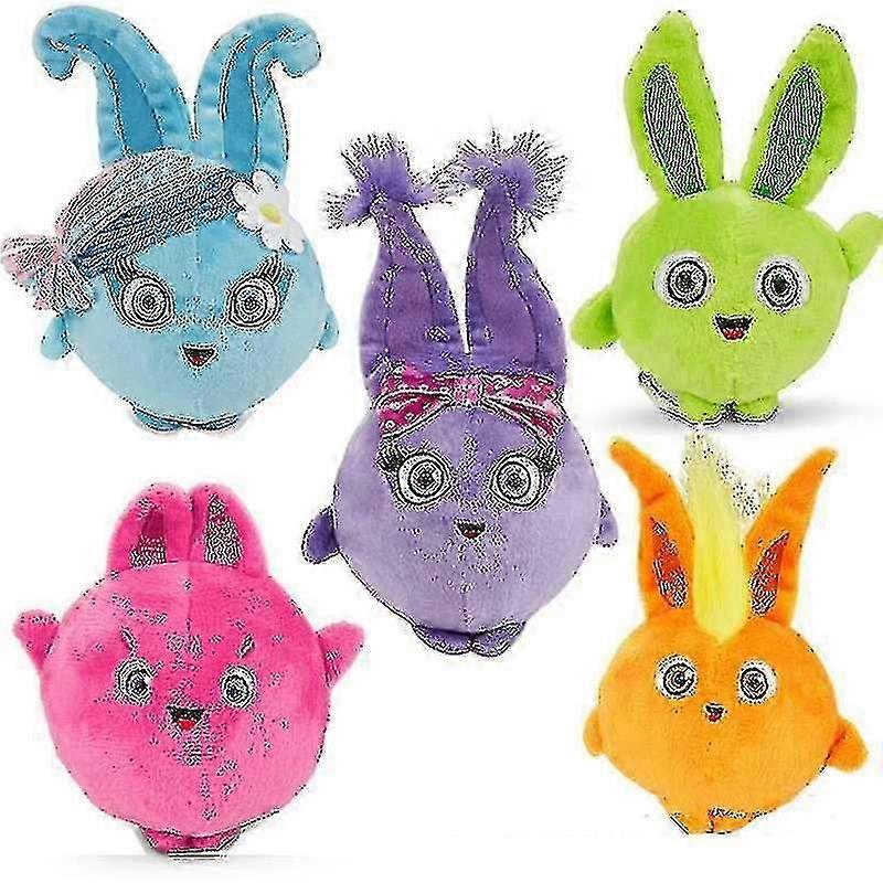 5pcs/set Plush Sunny Bunnies Stuffed Doll Soft Throw Pillow Decorations Children Kids Birthday Present Gifts Features: 1.Not easy deformed, resistant to pulling/squeezing/kneading. 2.Plush toy, good hand feel, skin-friendly. 3.Cute anime character design, fun and lovely. 4.Anti-wrinkle short plush material, no lint off, pp cotoon filling, soft and comfortable 5.Great gift for kid, boys, girls, on birthday, Christmas, New Year. Notice: Actual color may be slightly different from the image due to different monitor and light effect Please allow 1-3cm deviation due to manual measurement Description: 1.Name: plush doll 2.Size Blue: 23cm Red: 17cm Purple: 22cm Yellow: 22cm Green: 23cm Note: Due to the light and screen setting difference, the item's color may be slightly different from the pictures. Please allow slight dimension difference due to different manual measurement. Sold by-DIMEANI official store